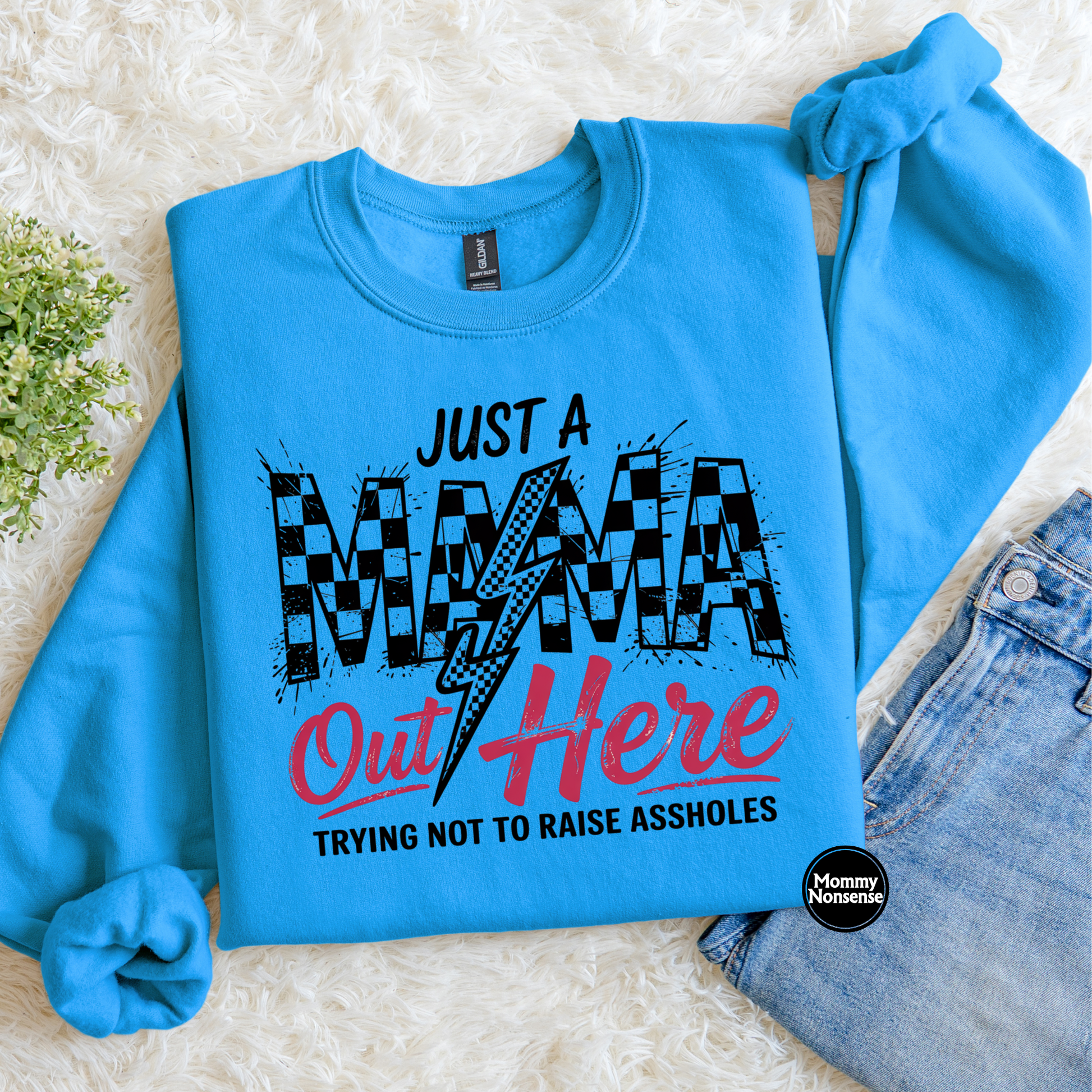 Just A MAMA Out here Trying Not To Raise Assholes- DTF TRANSFER (K93) DTF Transfer