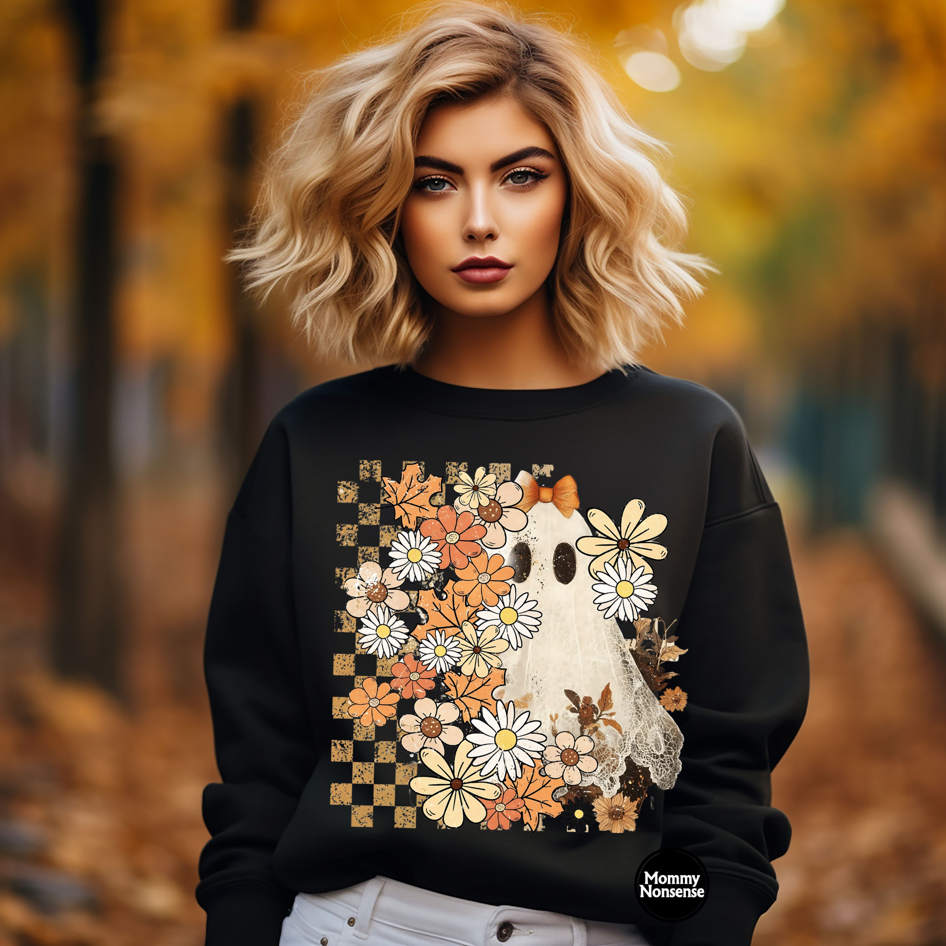 Ghost with checkered background -DTF TRANSFER (H19) DTF Transfer