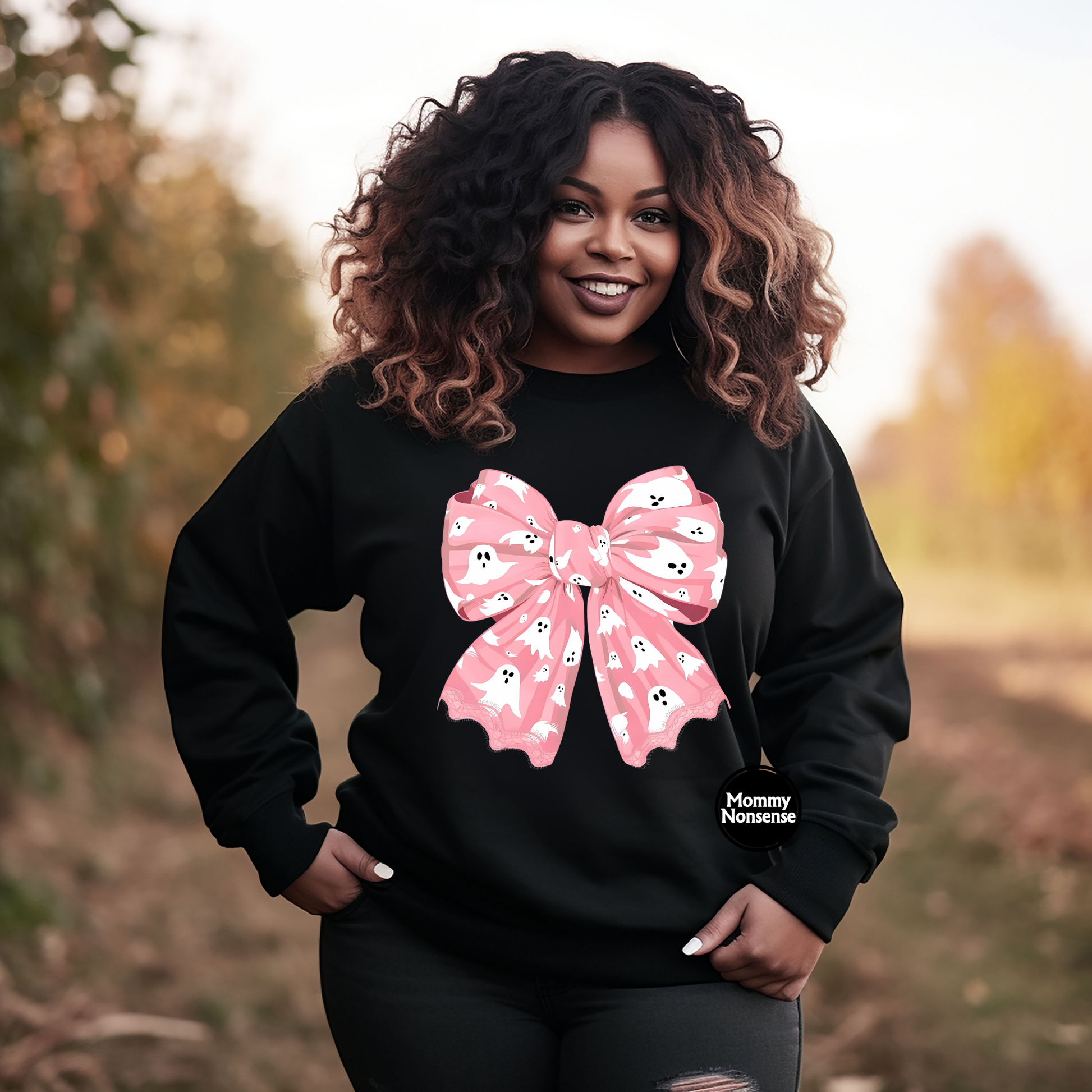 Pink Ghost Bow -DTF TRANSFER (H52) DTF Transfer