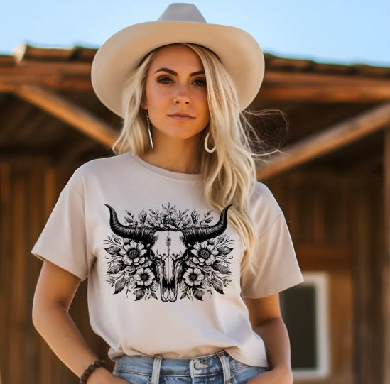Floral Skull- screen print transfer (G15) HOT PEEL